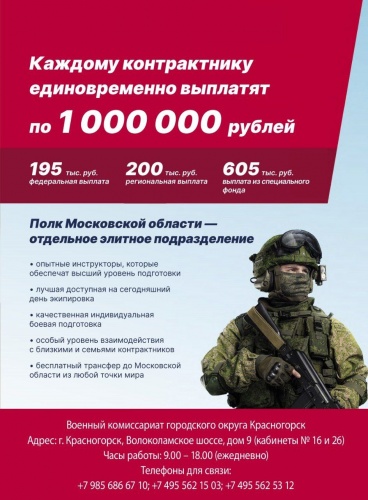 Служба по контракту – это стабильное достойное денежное довольствие и социальные гарантии. Подробности на контрактмо.рф