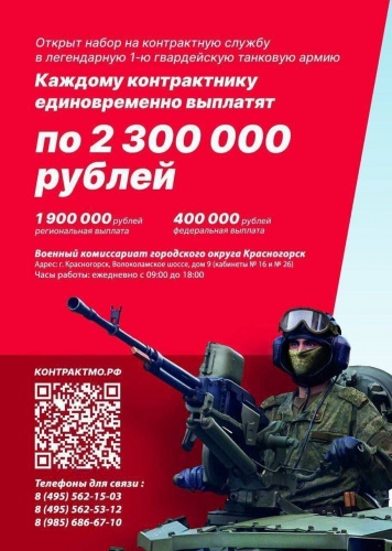 Служба по контракту – это стабильное достойное денежное довольствие и социальные гарантии. Подробности на контрактмо.рф