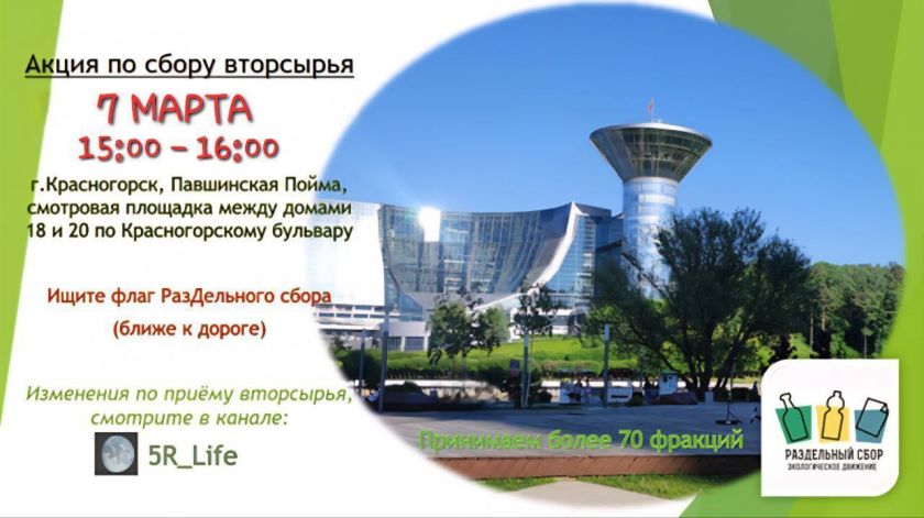 7 марта в Павшинской пойме пройдёт акция по раздельному сбору отходов